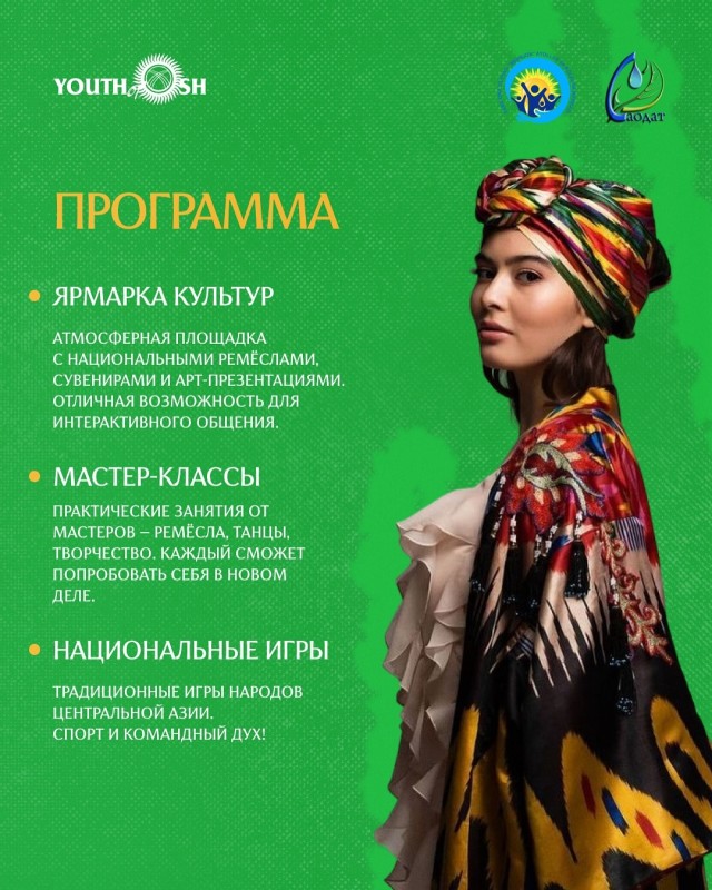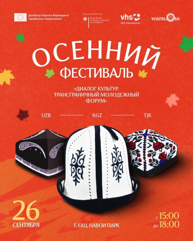 25–26 сентября 2025 года в г. Ош пройдёт Осенний фестиваль «Диалог культур. Трансграничный молодежный форум», который объединит молодёжь Кыргызстана, Таджикистана и Узбекистана.