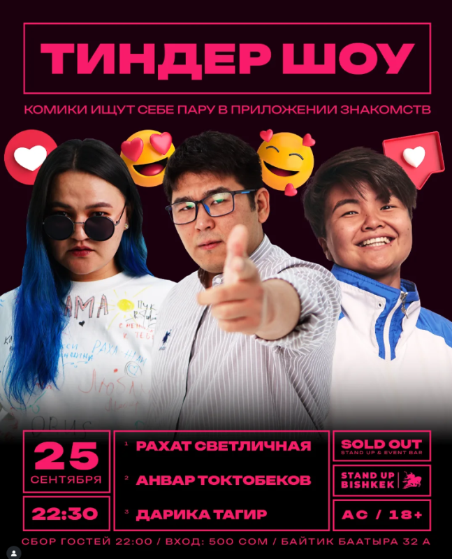 На экране будут анкеты разных людей из тиндера. Зрители могут помочь или же мешать комику строить любовь 😅