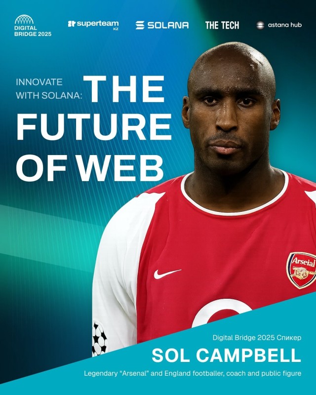 😍 Впервые в Казахстане — уникальная возможность встретиться с Президентом Solana Foundation и мировой футбольной легендой Солом Кэмпбеллом!