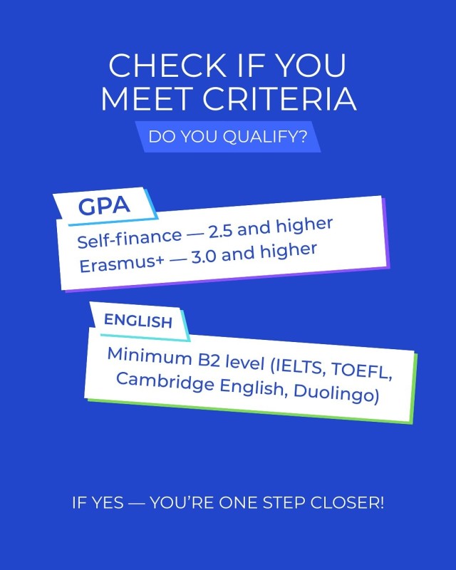 • Минимальный средний балл: 2,5 (для Erasmus+ – 3,0)