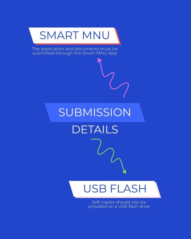 📂 Бланк заявления и документы должны быть поданы через Smart MNU, а также предоставлены в электронном виде (на флэш-накопителе) в офис №220.