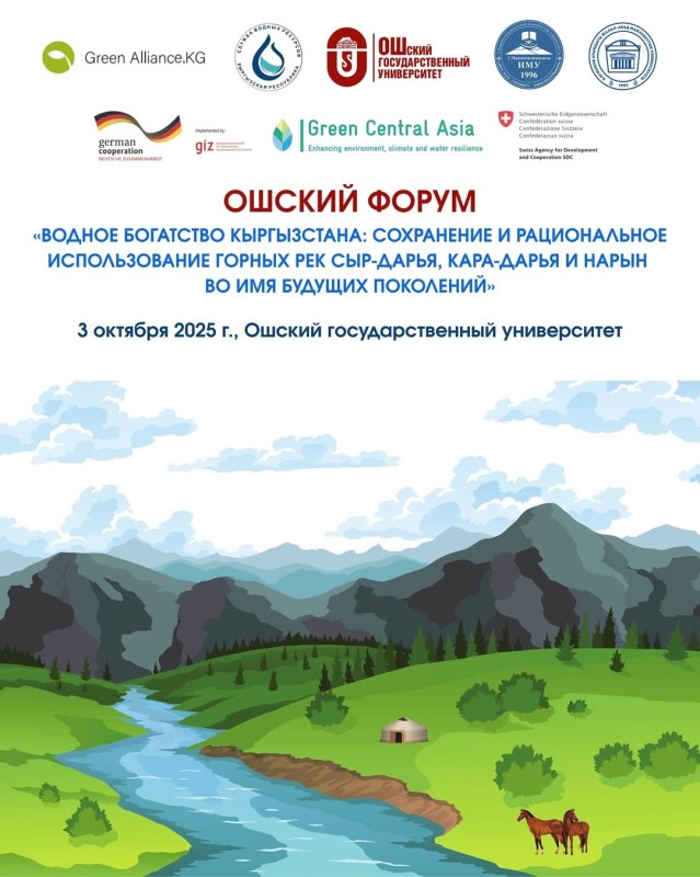 Приглашаем вас на важное и актуальное событие: Ошский форум «Водное богатство Кыргызстана: сохранение и рациональное использование горных рек Сыр-Дарья, Кара-Дарья и Нарын во имя будущих поколений»!
