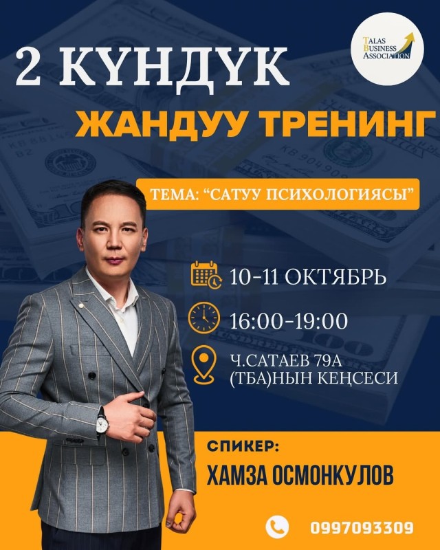 Таласская бизнес-ассоциация организует двухдневный живой тренинг специально для вас🔥