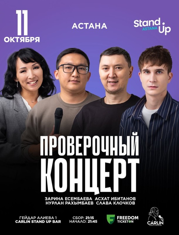 Оффлайн: Казахстан, г. Астана, Carlin Standup Bar, Гейдара Алиева 1