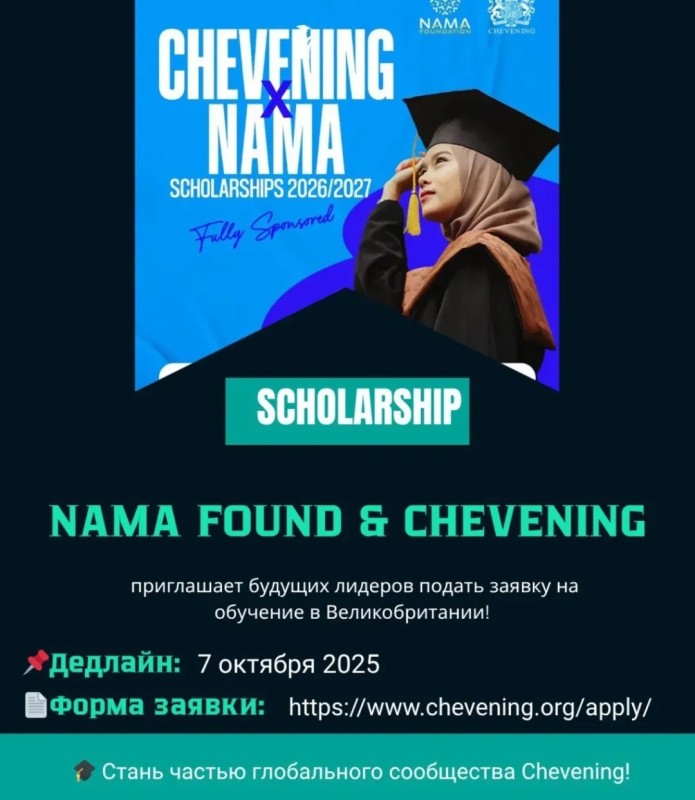 🌍 Фонд NAMA совместно с Chevening приглашает будущих лидеров использовать шанс и поступить на обучение в Великобритании!