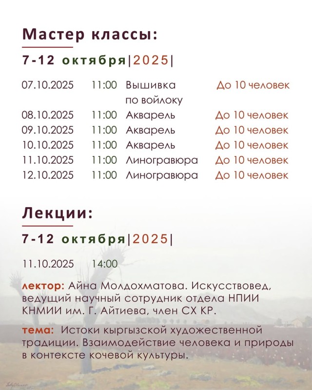 Запись на мастер-классы и экскурсии только по номеру телефона: 0312621641