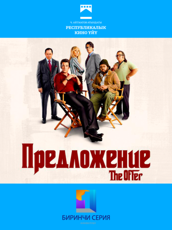 «Предложение», 2022, США Декстер Флетчер Мини-сериал режиссёра о съёмках фильма «Крёстный отец». Основан на воспоминаниях продюсера картины Альберта С. Радди Дом кино им. Ч.Айтматова Адрес: Ул. Якова Логвиненко, 13
