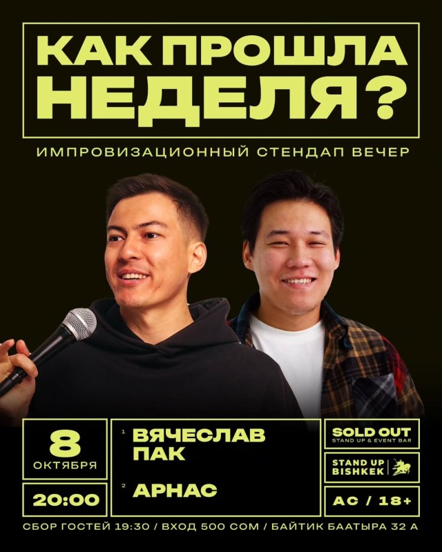 Как прошла неделя? это формат, где комики обсуждают как прошла ваша неделя, если вам есть, что рассказать, то вам точно к нам 😎