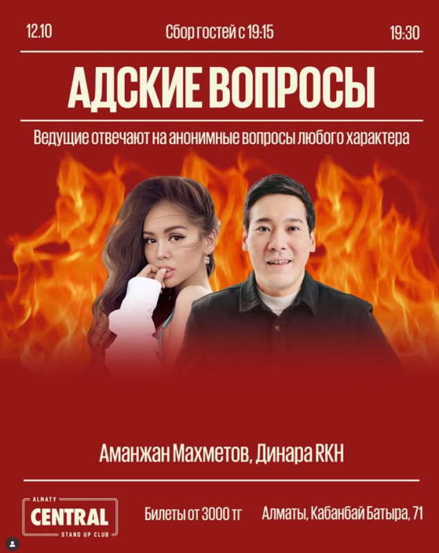 Адские вопросы 🔥 уже 12 октября, в 19:30 Аманжан Махметов и Дикана RKH отвечают на самые каверзные вопросы зрителей 😜