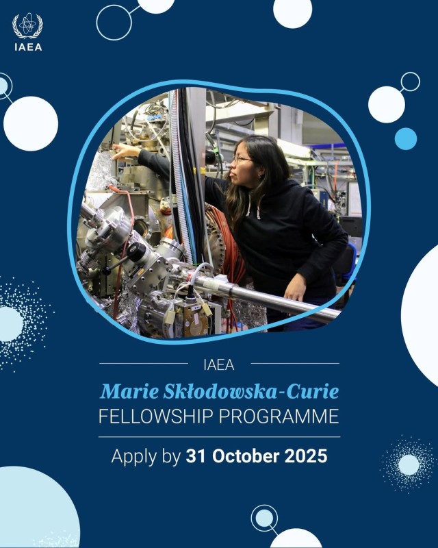 Молодые женщины, заинтересованные в карьере в ядерной сфере, могут подать заявку на Программу стипендий МАГАТЭ имени Марии Склодовской-Кюри (MSCFP) 2025 года.