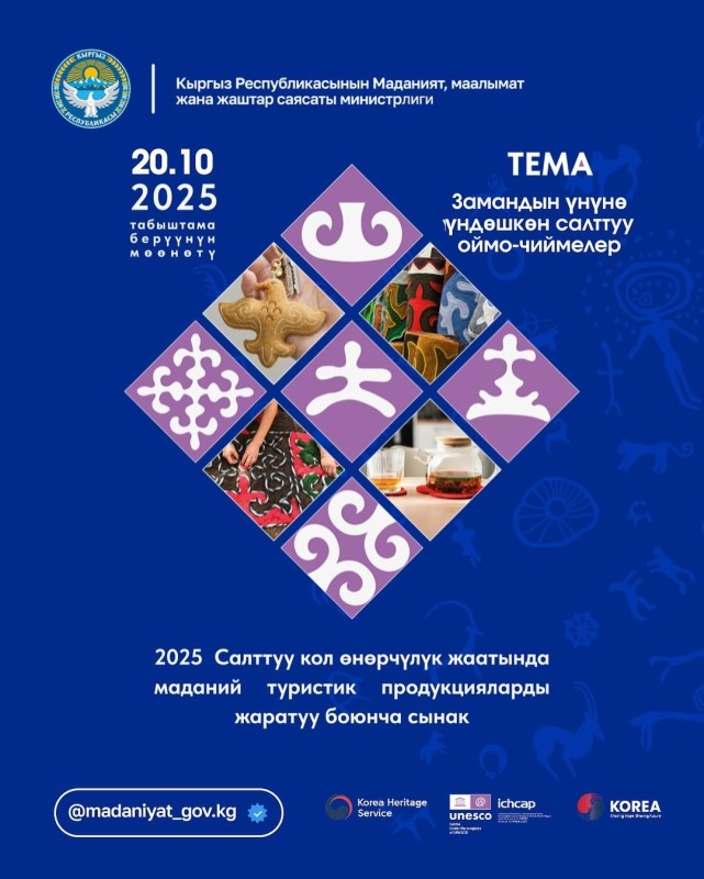 Кыргыз Республикасынын Маданият, маалымат жана жаштар саясаты министрлиги Корея Республикасынын ЮНЕСКОнун колдоосу алдындагы Азия-Тынч океан аймагындагы материалдык эмес маданий мурастар боюнча эл аралык маалыматтык-тармактык борбору (ICHCAP) менен кызматташтыкта маданий туристтик продукт жаратуу боюнча сынак жарыялайт.