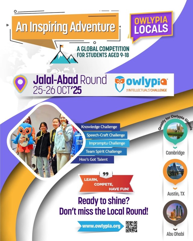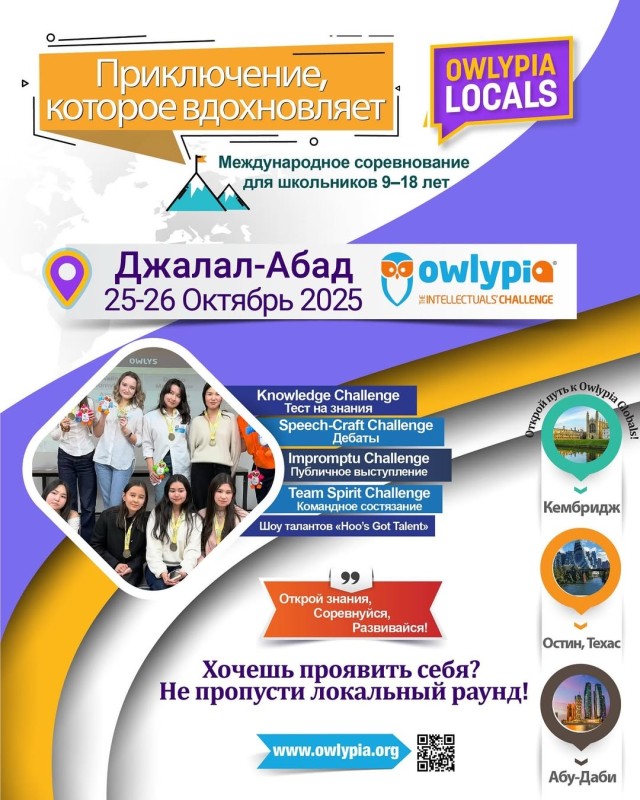 📣 Впервые в нашем городе Манас (Джалал-Абад )🎉 пройдет Международная олимпиада Owlypia для школьников 9–18 лет.