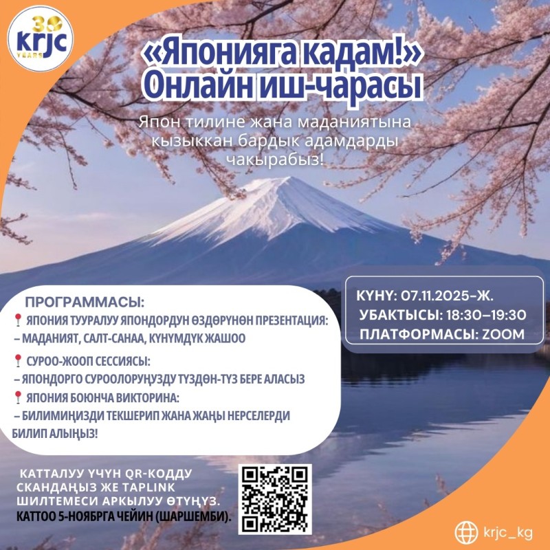 Анда сизди биздин «Японияга кадам» аттуу иш чарага чакырабыз!