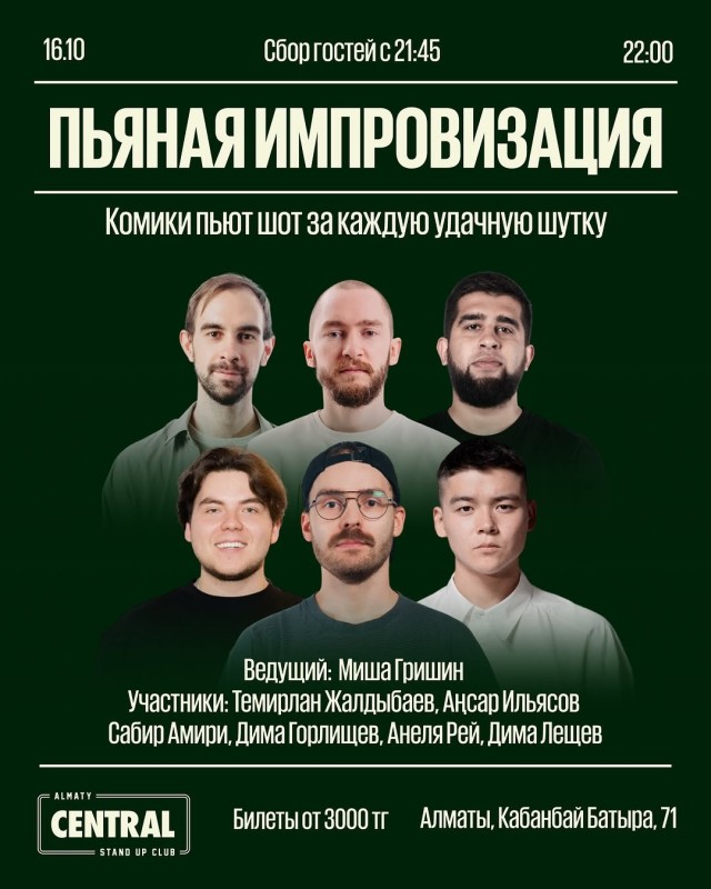Оффлайн: Казахстан, г. Алматы, Almaty Central Stand Up Club