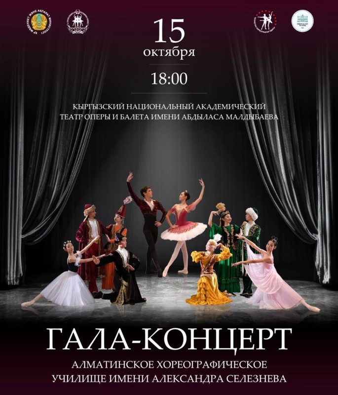 15 октября 2025 года в 18:00 на сцене Кыргызского национального академического театра оперы и балета имени Абдыласа Малдыбаева состоится Гала-концерт воспитанников Алматинского хореографического училища имени Александра Селезнёва