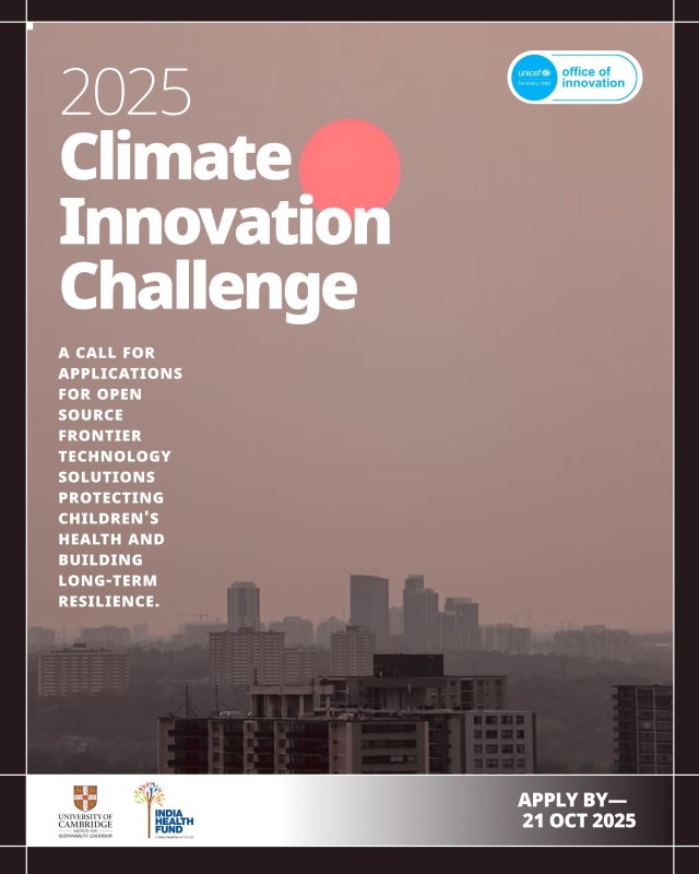 Are you building bold solutions to protect children from the impacts of climate change? UNICEF, in collaboration with India Health Fund and Cambridge Institute for Sustainability Leadership, is inviting early- and growth-stage frontier tech startups from emerging economies to apply.