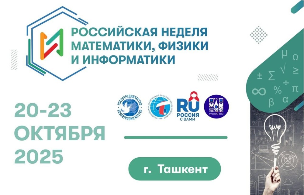 📆 С 20 по 23 октября в филиале Российского государственного педагогического университета им. А.И. Герцена пройдет Российская неделя математики, физики и информатики для школьников и педагогов Узбекистана и России. Организаторы: Россотрудничество и Пензенский государственный технологический университет.