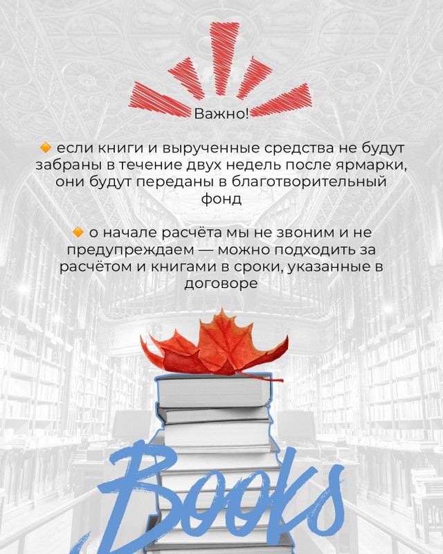 3️⃣ Забираете деньги или непроданные книги с 27 октября по 9 ноября.
