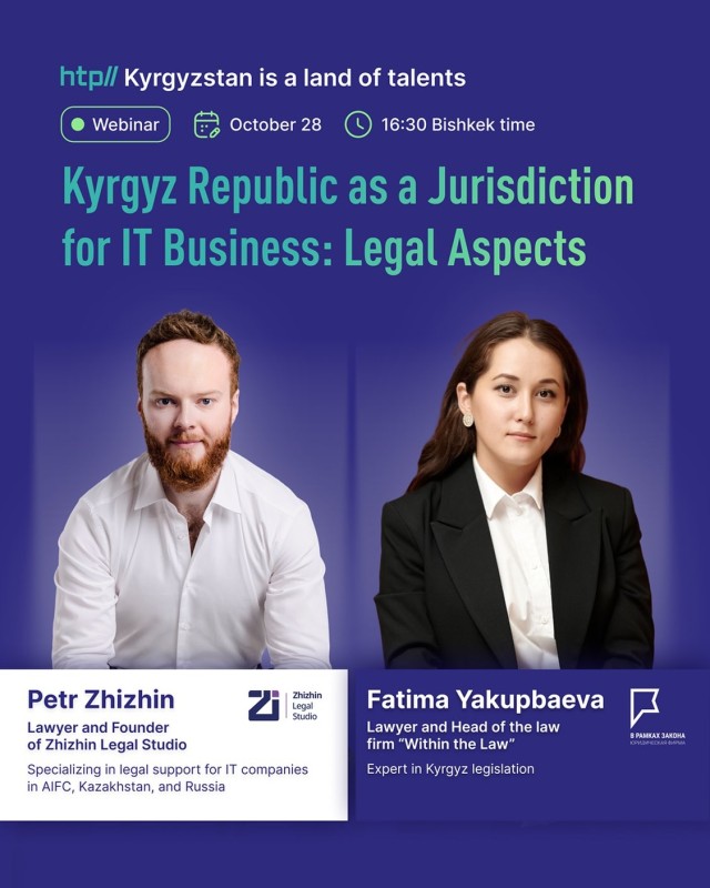 Вебинар будет проходить в форме диалога между двумя юристами, которые обсудят юрисдикцию Кыргызстана через призму общих юридических вопросов, с которыми сталкиваются ИТ-компании.