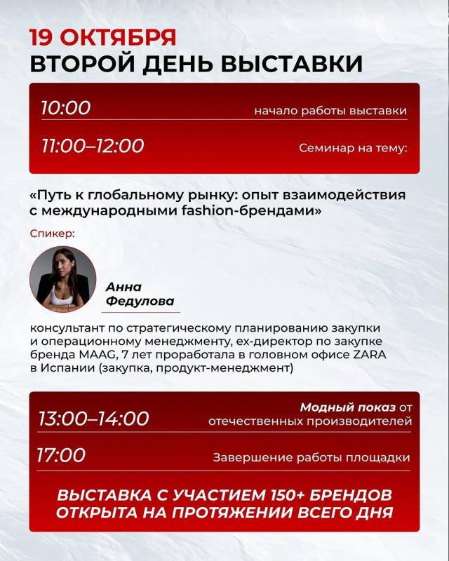 18–19 октября приглашаем вас на B2B Fashion Expo 2025 — главное событие для тех, кто работает в сфере моды и ищет надежных партнёров.