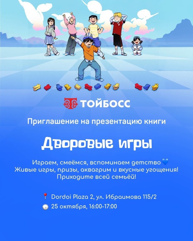 Иш-чара акысыз жана баары үчүн жеткиликтүү! Жалпы үй-бүлөңүз менен келип, биз менен бирге ойноңуз, балалыгыңызды эстеп, сонун маанайга ээ болуңуз 💙