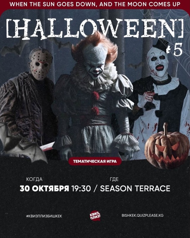 Празднуем Хэллоуин и играем в тематический Квиз, плиз! Вопросы про самые разнообразные ужасы, какие только могут быть: от хорроров Хичкока до динамики курса доллара. Вооружайтесь чесноком, серебряным колом и берите с собой самых смелых друзей. Будет страшно весело.