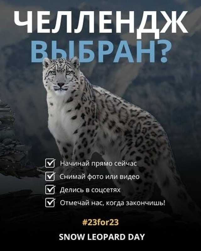 Участников акции по всему миру приглашают разместить фото или видео своей активности с хэштегом #23for23, а также #SnowLeopardDay и #SnowLeopardKyrgyzstan, отметив официальные аккаунты организаторов: