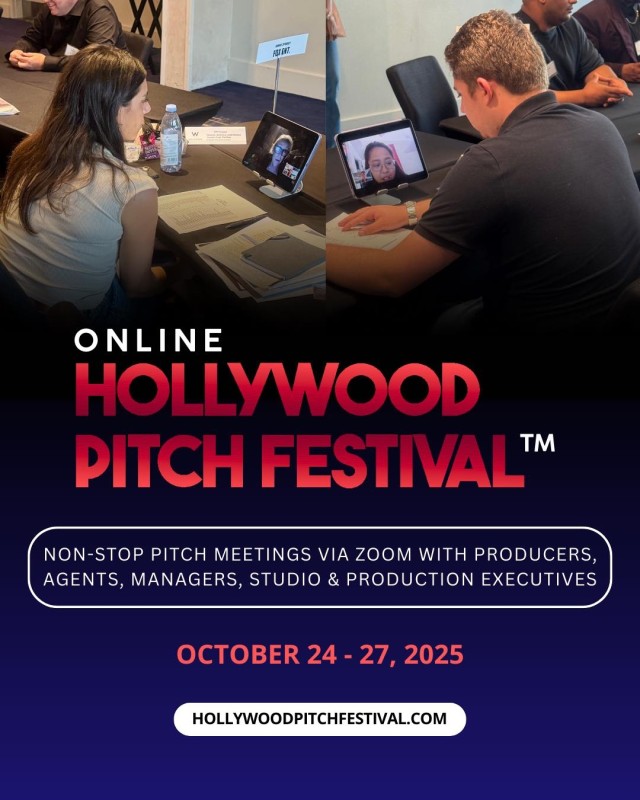 The Online Hollywood Pitch Festival returns October 24–27, 2025, giving writers and creators the rare opportunity to present their screenplays, pilots, books, web series, and reality shows directly to top buyers and representatives from anywhere in the world. No flights, no hotels, no extra expenses.