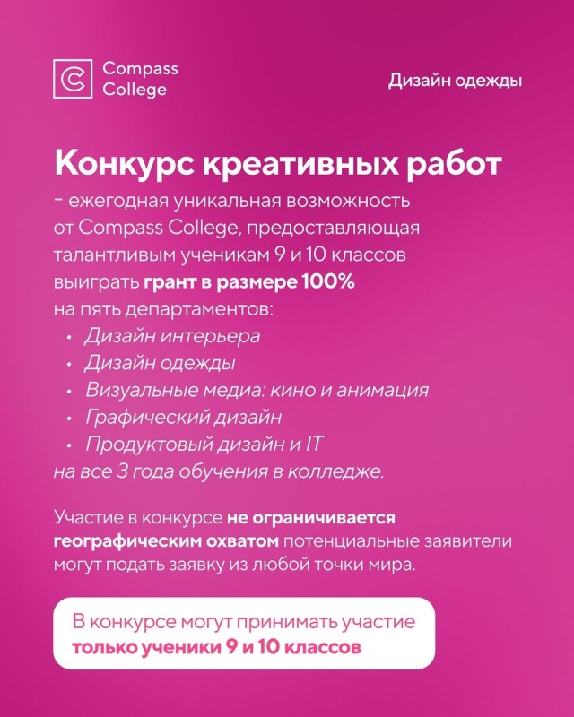 Участвуй в Творческом конкурсе по направлению «Дизайн одежды» и получи возможность учиться бесплатно!