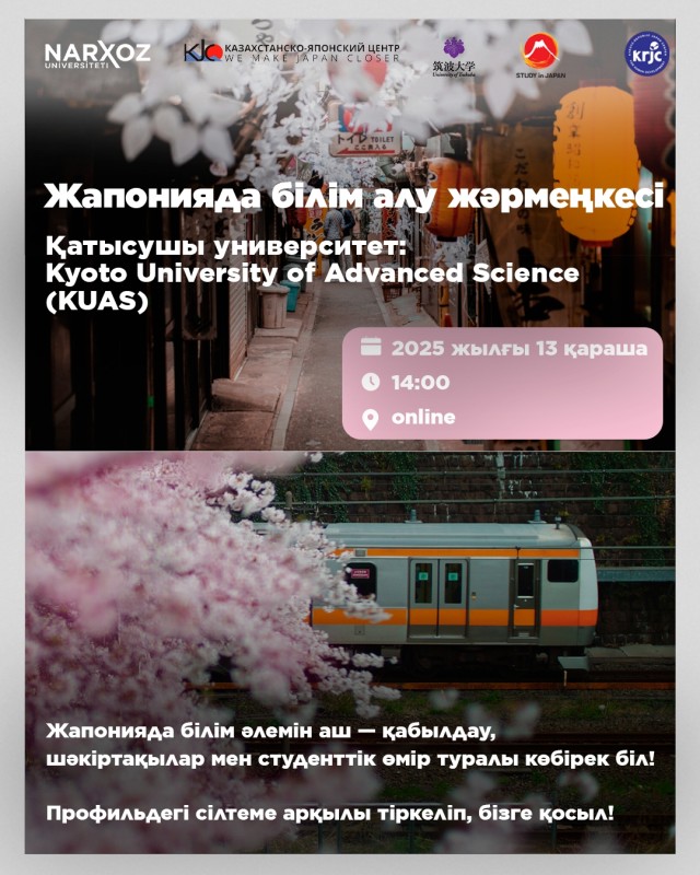📚 Жапон орталығы сіздерді жапондық жоғары оқу орындарымен тікелей таныстыратын білім беру жәрмеңкесіне шақырады!