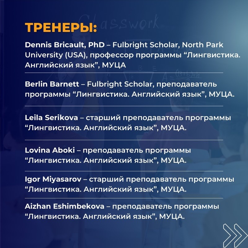 Leila Serikova, Lovina Aboki, Igor Miyasarov, Aizhan Eshimbekova - преподаватели МУЦА