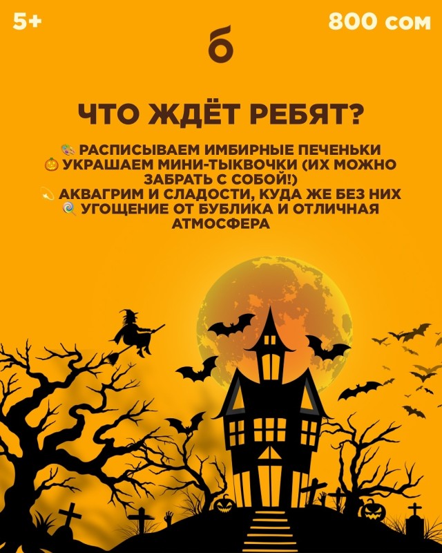 📅 1 ноября в 14:00, приглашаю юных Бубликчан на весёлый хэллоуинский мастер-класс в Бублике на Уметалиева, 74 🎃