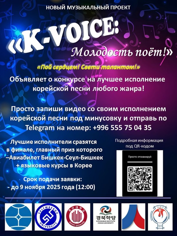 Корей тилиндеги каалаган жанрдагы ырды аткаруу боюнча мыкты аткаруу сынагы жарыяланат!