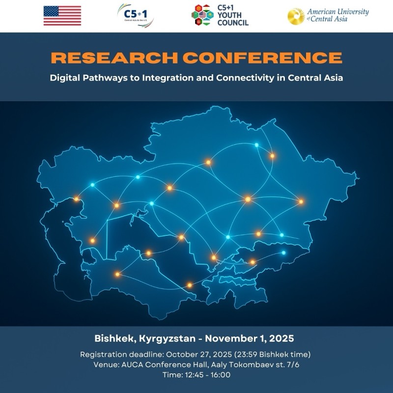 Присоединяйтесь к очной исследовательской конференции Молодежного совета C5+1 (МСС), где выпускники МСС C5+1 представят свои выводы и предложения по политике, направленные на укрепление региональной интеграции в Центральной Азии. Мероприятие также послужит открытой площадкой для обмена идеями, предложениями и отзывами для доработки и обогащения представленных исследований.