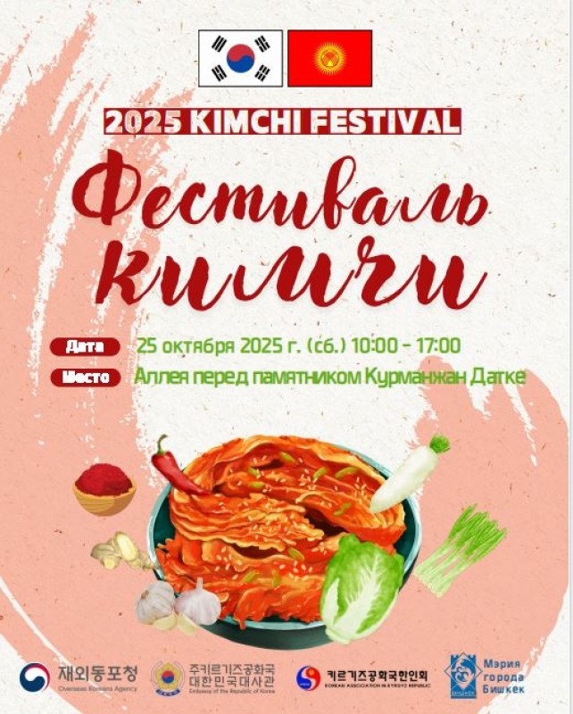 25 октября 2025 года в Бишкеке состоится ежегодный фестиваль корейского кимчи, организованный Посольством Республики Корея в Кыргызской Республике.