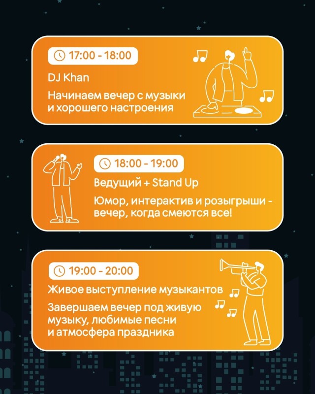 🎸 19:00 – 20:00 — Живое выступление музыкантов