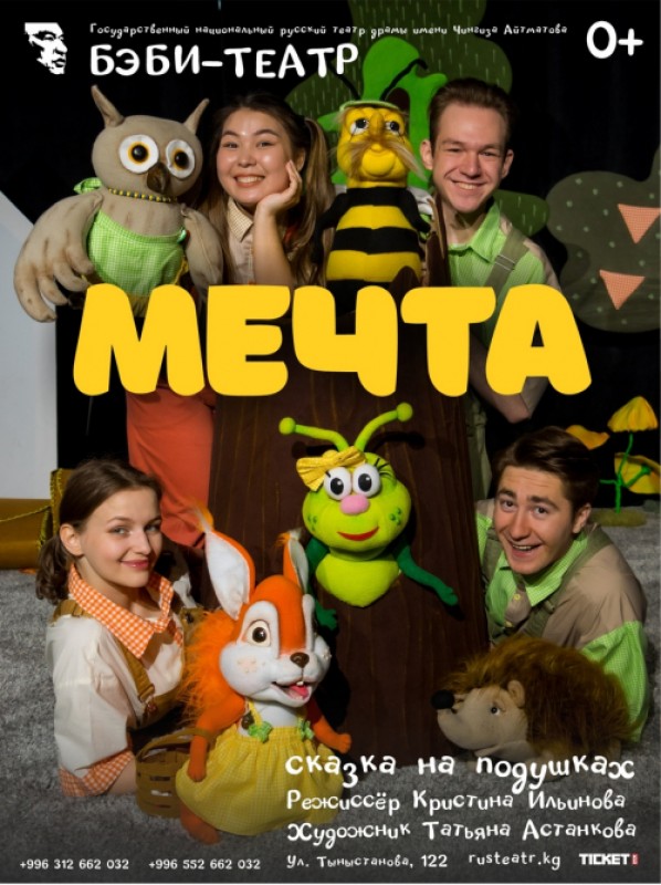 Сказка на подушках «Мечта» - маленькие зрители отправятся в лесное приключение. Увидят и услышат, как просыпается природа. Узнают, что такое день и почему приходит ночь. Прочувствуют в звуках и атмосфере пробуждение природы. Познакомятся с временами года, насекомыми, лесными животными и птицами. Вместе с актерами соберут грибочки для ежика и орехи для белки. И помогут маленькой гусенице исполнить ее Мечту!