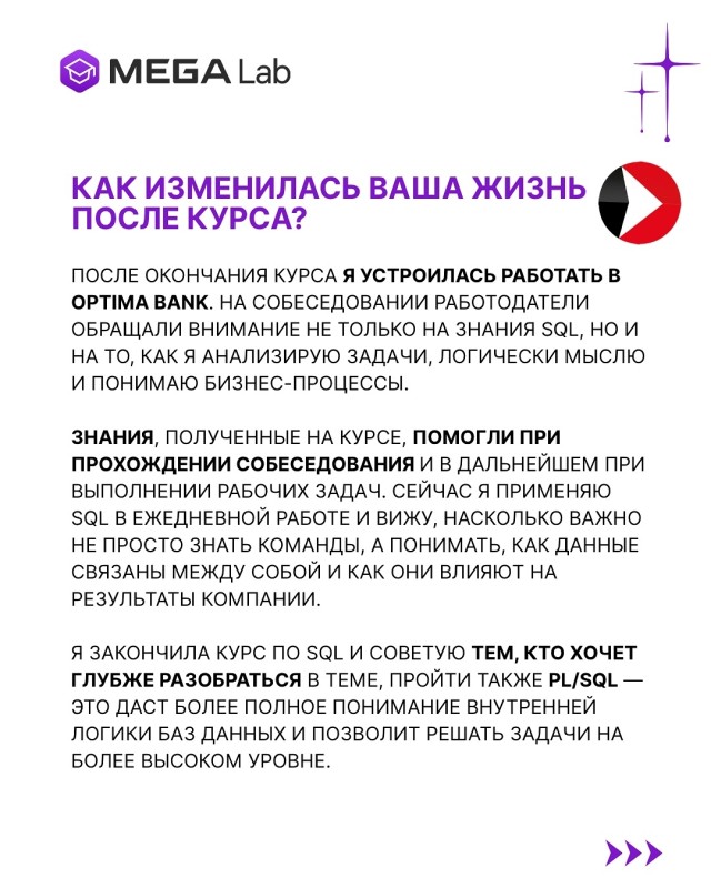 Сегодня хотим поделиться историей Анастасии, которая закончила курсы по направлению SQL🥰
