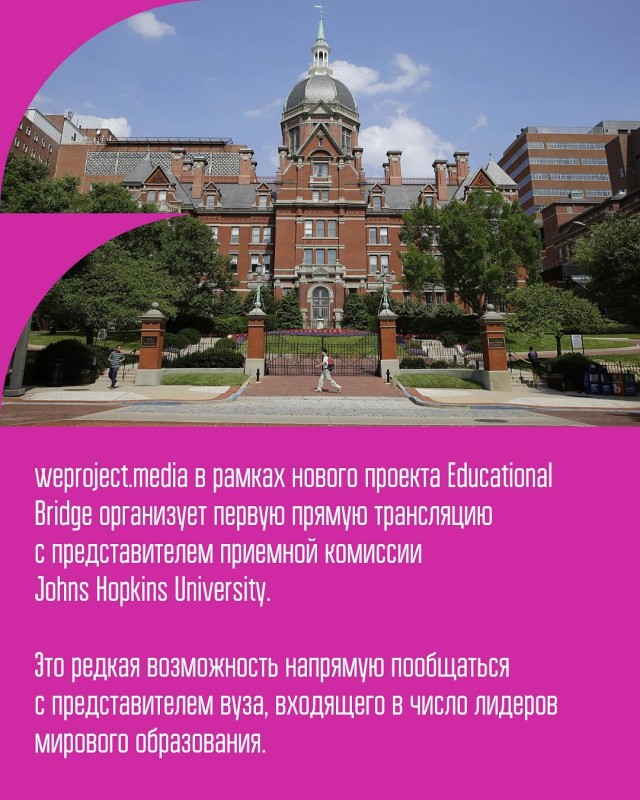 ‼ weproject.media организует прямую трансляцию с представителем Johns Hopkins University — одного из лучших университетов мира