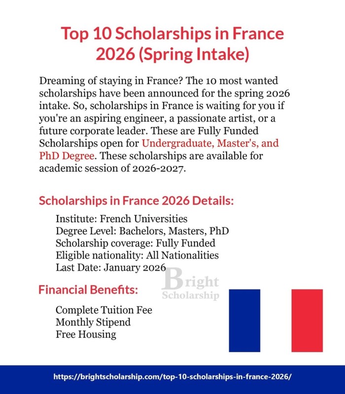 Top 10 Scholarships in France 2026 (Spring Intake)