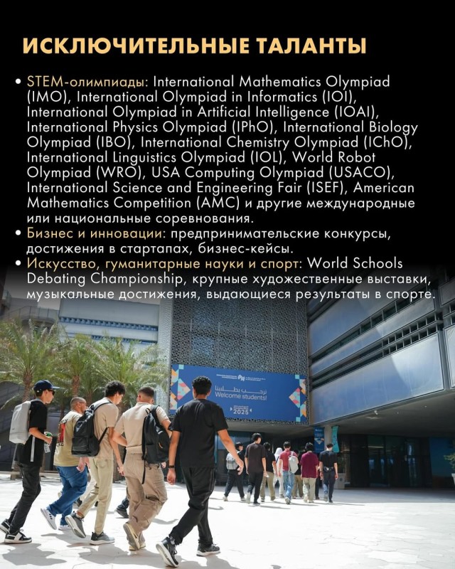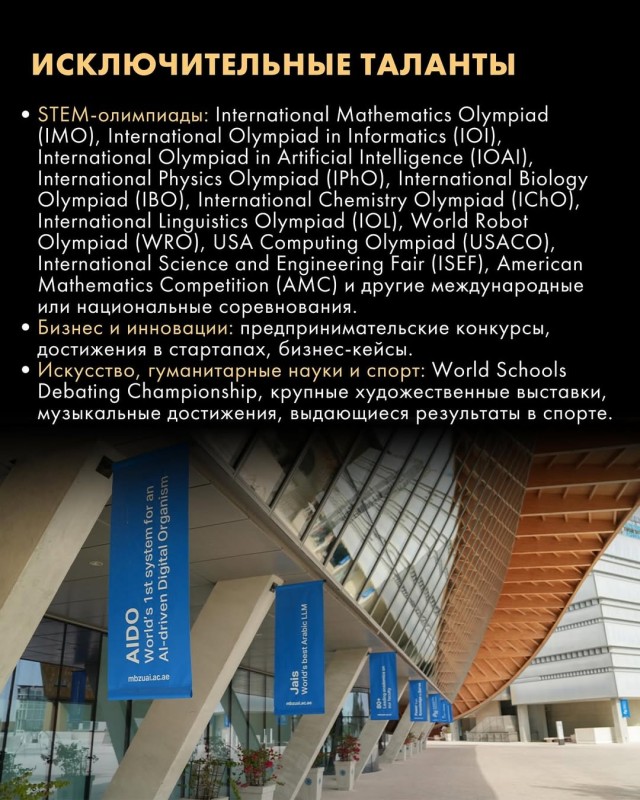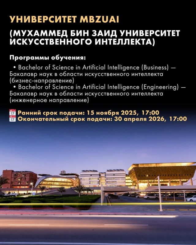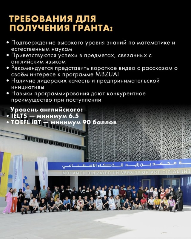 Программы для будущих лидеров в AI, инженерии и бизнесе обучение и проживание могут покрываться до 100% грантом 🇦🇪