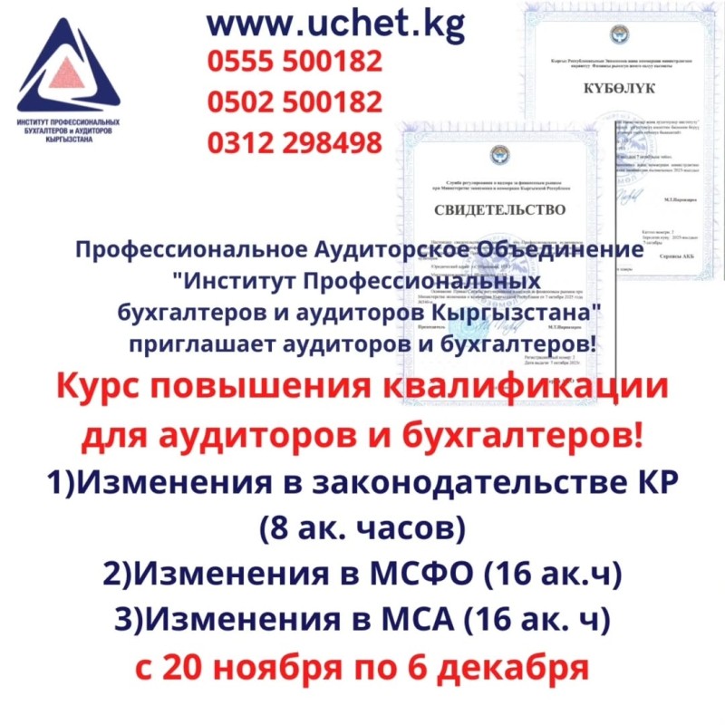 💥ПАО Институт профессиональных бухгалтеров и аудиторов Кыргызстана прошло аккредитацию по Программе непрерывного профессионального образования аудиторов в Службе регулирования и надзора за финансовым рынком при МЭК КР!