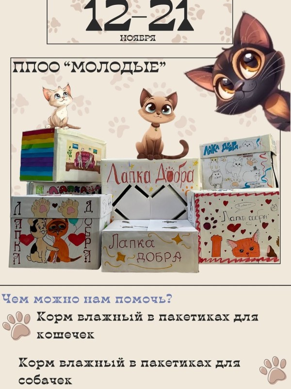 При поддержке добровольческого движения КРСУ «Лучи Добра», мы вновь запускаем акцию «Лапка Добра» - с 12 по 21 ноября🍁