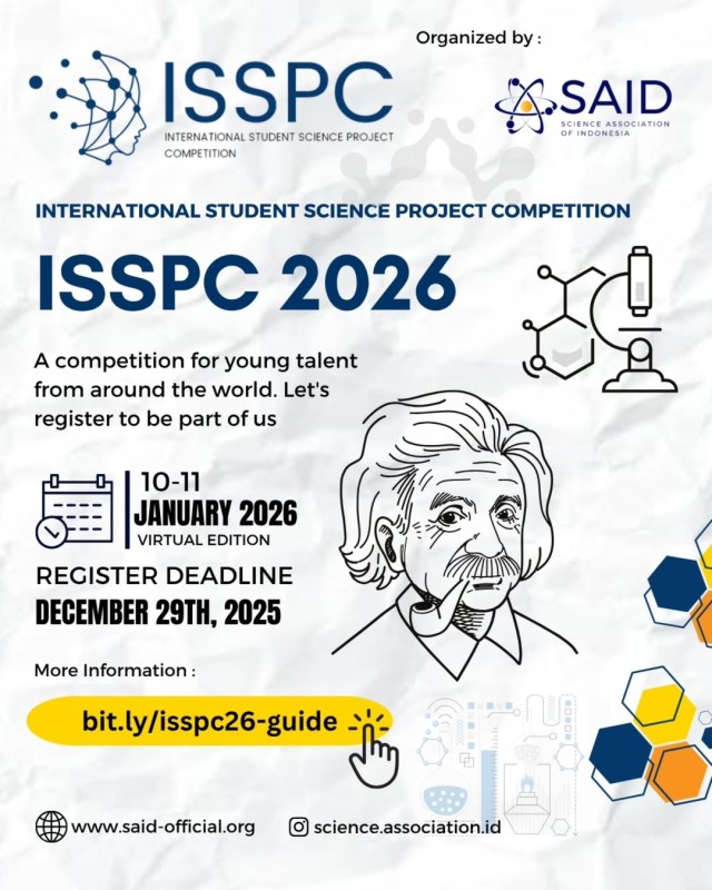 Организованный Ассоциацией SAID – Science Индонезии, ISSPC предоставляет студентам платформу для презентации своих идей, исследований и проектов, которые могут изменить мир ☺️