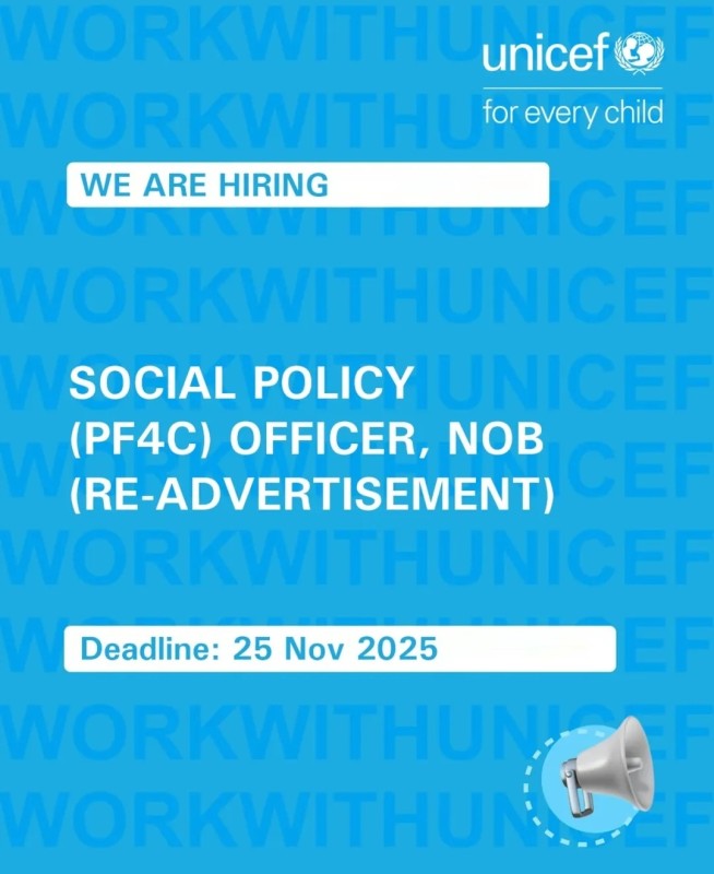 UNICEF in Kyrgyzstan is announcing an open position for Social Policy (PF4C) Officer, NOB (re-advertisement).