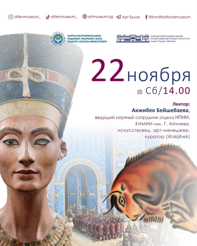 Лектор: Акжибек Бейшебаева — КУКСИМдин жетектөөчү илимий кызматкери, искусствотануучу, арт-менеджер, куратор (@akjibek).