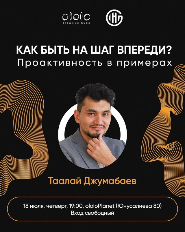 Присоединяйтесь к мастер-классу «Как быть на шаг впереди? Проактивность в примерах» от Таалая Джумабаева.
