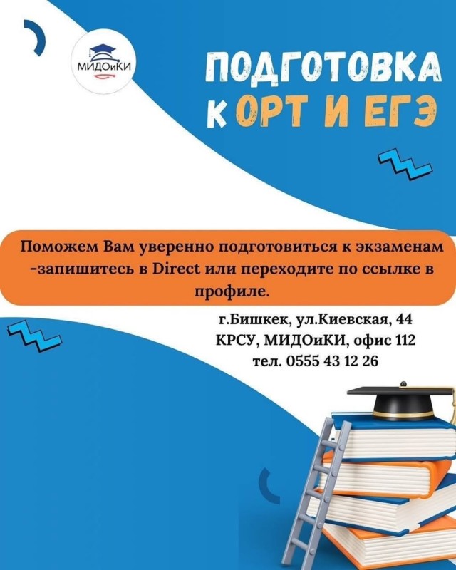 ‼️ В КРСУ продлен набор на курсы подготовки к ОРТ и ЕГЭ. Программа организована Центром довузовской подготовки МИДОиКИ, и направлена на комплексное освоение ключевых предметов с теорией и практикой.