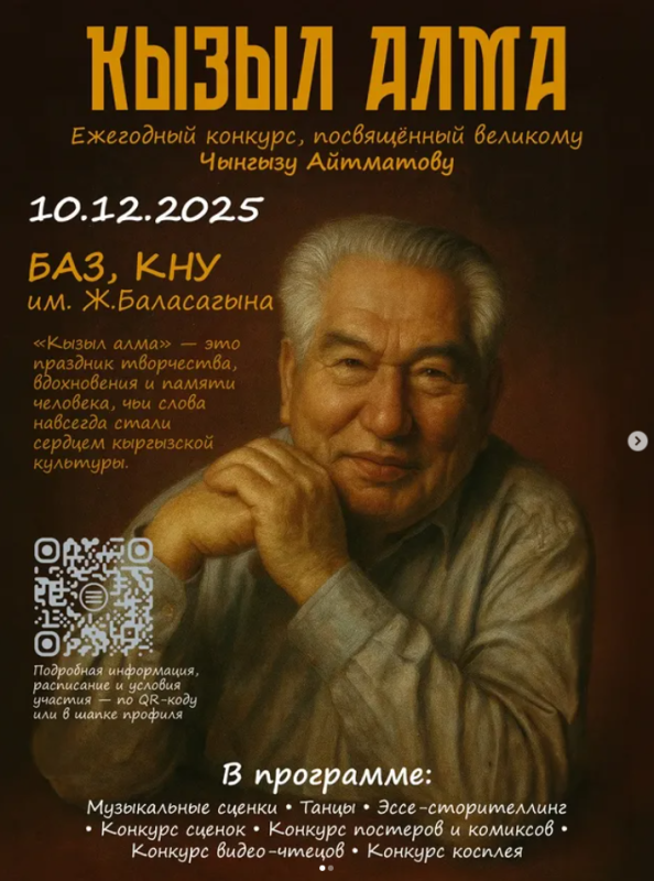 10 декабря в КНУ им. Ж.Баласагына пройдёт творческий конкурс, посвящённый наследию Чингиза Айтматова. Приглашаем студентов проявить себя!