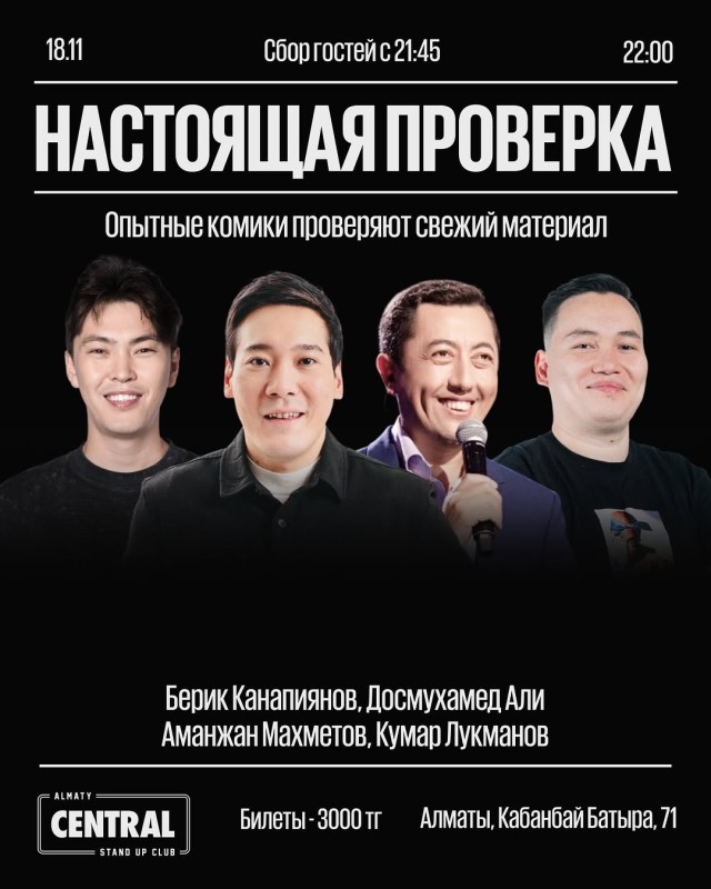 Оффлайн: Казахстан, г. Алматы, Almaty Central Stand Up Club